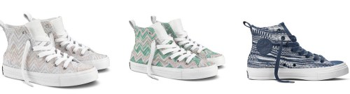 available April 14 exclusively at Missoni stores, Fred Segal, Jeffrey’s in Atlanta and New York, Aloha Rag (and possibly Converse flagship locations)