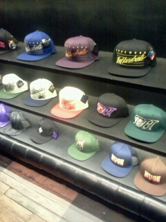 In New York, the store is located at 96 Grand Street, not too far from other urban subculture fare like the Billionaire Boys Club and BAPE. Once inside, it’s cool and a little dark, but not unfriendly, though customers are free to search without feeling followed. There is not as much merchandise as I would’ve hoped, like I did not see any varsity jackets like the awesome one Ora wore, but there were plenty of baseball caps, graphic tees, and some jeans and pants of a rough and slick material, and a small wall of eyewear.
