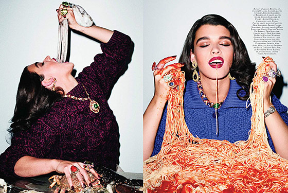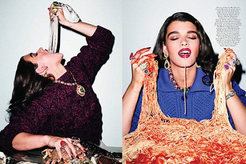 Because she was arguably more successful at an US 12-14 than at a US 2-0, fashion critics and fans may be wondering why is she pushing herself to be a size that was less bankable for her? It’s kind of a big deal when the kaiser himself Karl Lagerfeld still wants you to star in his ad, and we all know he feels about curvier or bigger sized women (his views on Adele left many people un-amused). Renn, only 26 years old, may still feel the classic intensity of finding how and when she is comfortable with her body, and the annoyance of discovering this is all the more exacerbated in the field she’s in. Whenever she loses LBs, she’s labeled a sell-out. When she is obviously more plus-size, her figure is used as a “your kind is beautiful too” in magazine features about being gorgeous at any size, finding clothes that fit your body, and even massive displays of food are used as props in kitschy photo shoots, as she did with provocateur photographer Terry Richardson. She chronicled her life thus far in modeling in her co-authored book Hungry in 2009, and this year she was included in Sports Illustrated‘s swimsuit issue.