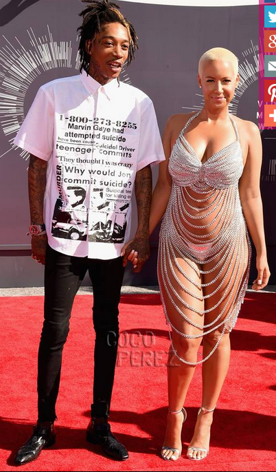 Amber Rose arrived at the 2014 MTV Video Music Awards in a chain-mail, chain-link “dress” that nearly matched her skin-tone! Sixteen years earlier, actress Rose McGowan pulled a similar stunt at the 1998 VMAs when she attended the show with her then-boyfriend Marilyn Manson on the red carpet in a stringy something.
