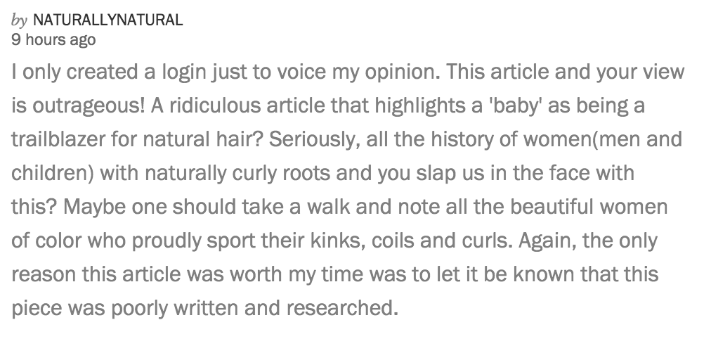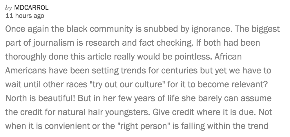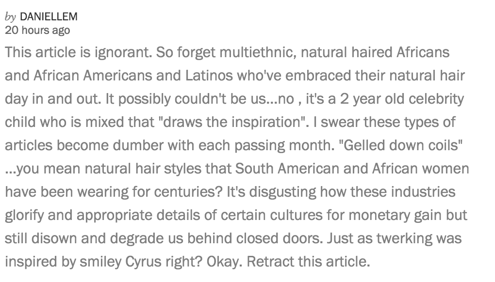 Now, a lot of the comments went in on Carlos and her article. VOGUE.com readers did not hold back on their disappointment of misplaced hair-do credentials.