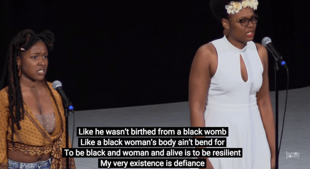 Chills ran up my spine. Goosebumps formed on my arms. Minor tears in the back of my eyes wanted to come forward. My eyes fixated on the screen until the end. I felt all of this as I watched poets Crystal Valentine and Aaliyah Jihad perform their stirringly honest poem “To Be Black And Woman and Alive.” It was recently selected as a part of the 2015 College Unions Poetry Slam Invitational finals back in April. Poetry collective Button Poetry posted the video of their set earlier this week.