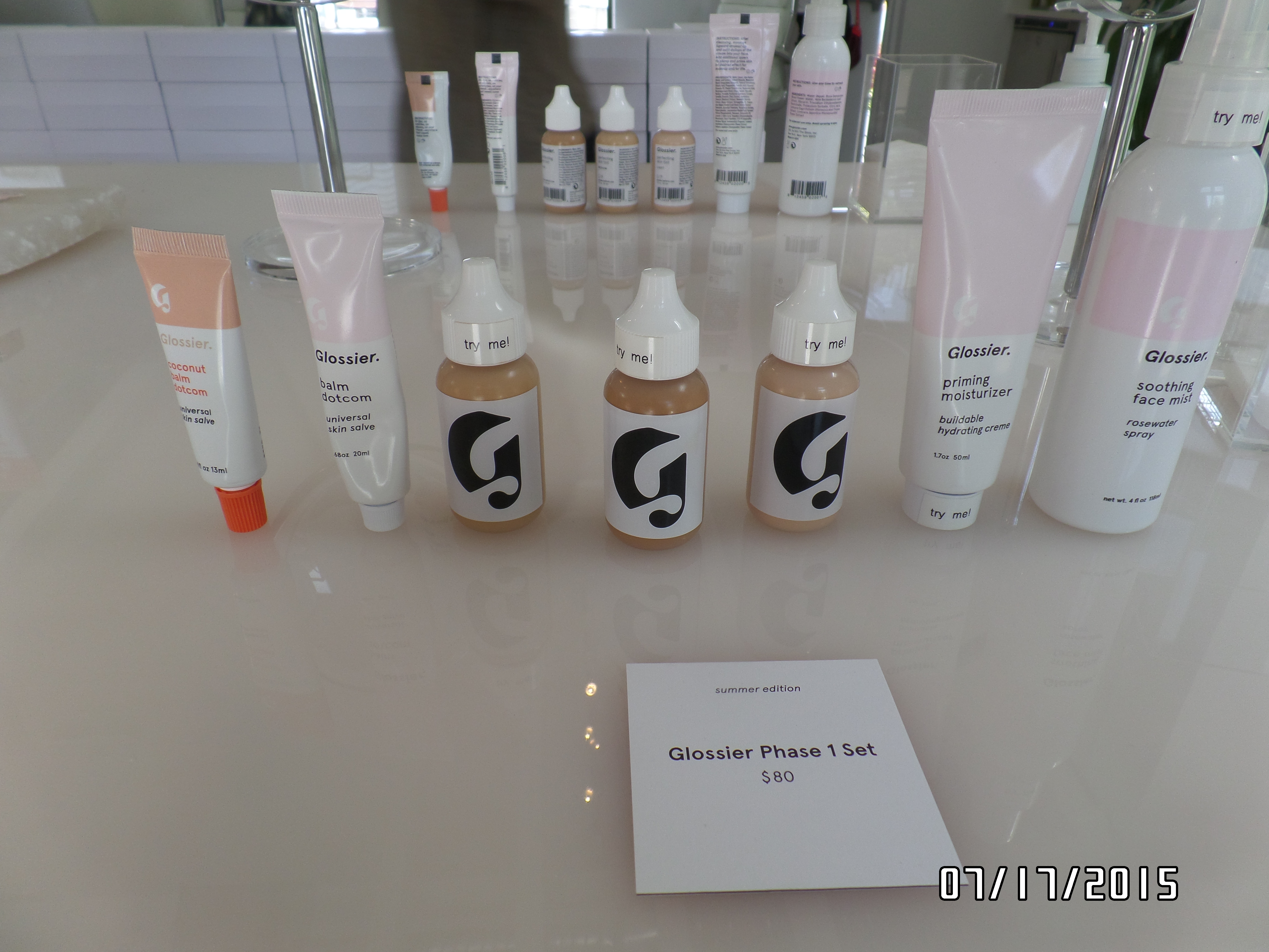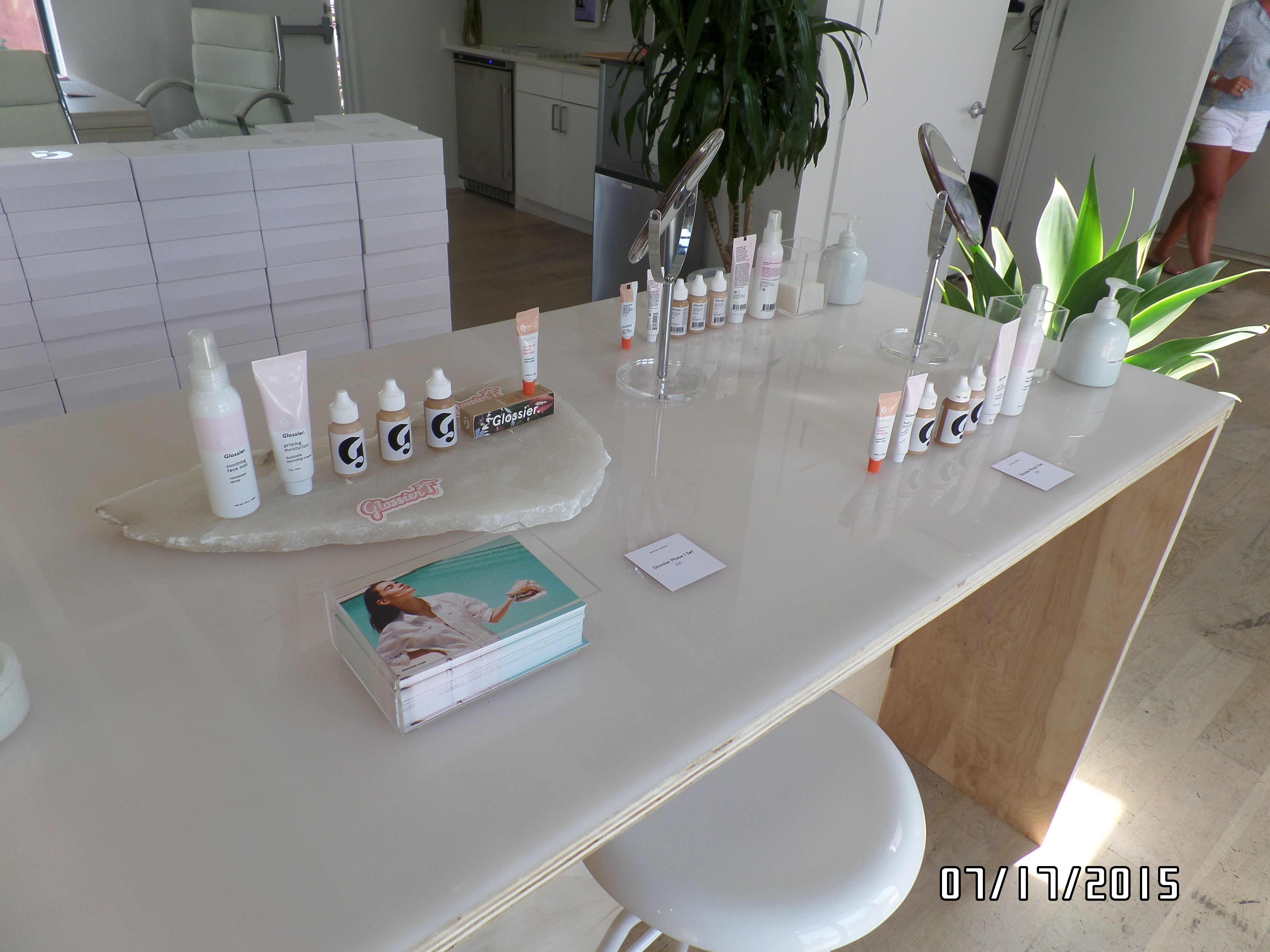 All of Glossier’s products were displayed on a long, rectangular table as testers for their guests.