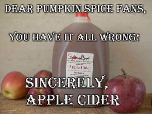 The questionable popularity of PS also brings to mind the underrated greatness of other seminal fall fixes like apple cider. It’s ver similar to the flavor o pumpkin spice. And have you tried an apple cider donut? They’re usually available at farmer market-like spaces and they are so delicious. The perfect balance of sugar and spice. I also tried this year an apple cider slushie. *grabs chest. concurrently dreams of one*