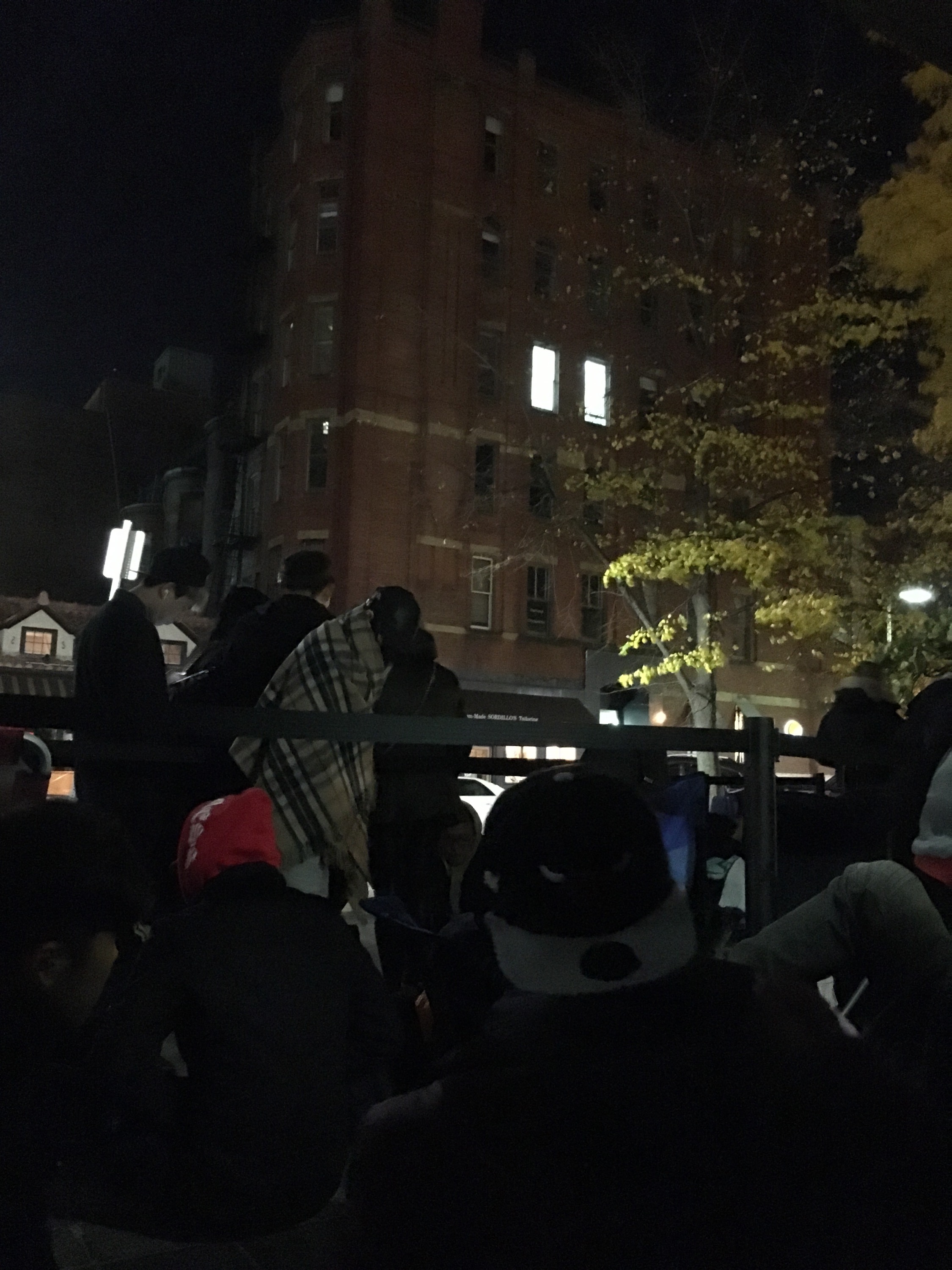 When I left work during the afternoon of November 4, I had passed by H&M in downtown out of curiosity and saw that two kids were already sitting outside! I knew the pressure was on. I was tempted to drop my own kitty down low and wait with them, but I wanted to go home instead for a bit and get some food and change my clothes. And it was only 5:30! I really didn’t want to wait from that time onward. Decisions, decisions!