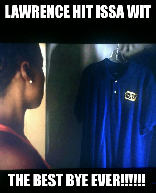 I had to consult social media on this one. I was too lost in an emotional frenzy to understand what I just viewed. I wasn’t alone. It looked as if half of Black Twitter got from the cutaway that Lawrence had moved out and made it clear to Issa that he was moving on by not just leaving his keys, but his Best Buy shirt. The rest of us were still stuck on the fact that he had called Issa two-three hours ago, after turning down $200 for a blow job or $400 for sex from a stripper at the club, and said that he missed her. Like the heartsick fool we’ve all been once, Issa left her girls weekend in Malibu and rushed back to kiss and make up. And only because Lawrence had shared an agreement of “let’s talk about it.” How quickly that went to shit was a major part of the mortification.