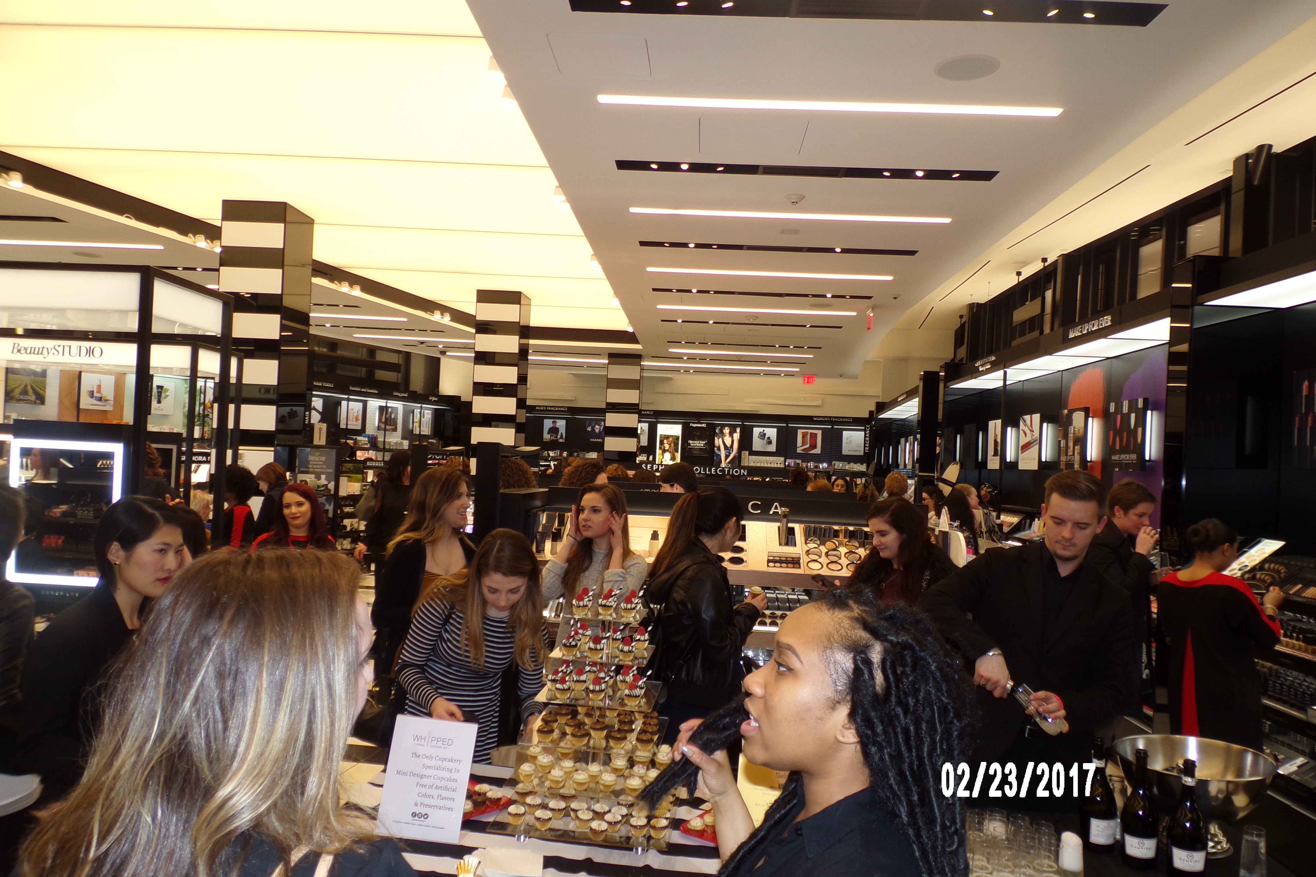 The unusual placement adds to its charm, and this Sephora is no less sophisticated and prepared for the dedicated makeup and skincare enthusiasts they are seeking. The night before, on Thursday, February 23rd, a soft launch was instituted, welcoming local PR types, beauty bloggers, and whoever else got on the guest list to check out and shop before the ribbon-cutting opening at 10 AM. I was there as well! (Because I couldn’t resist a Sephora party).