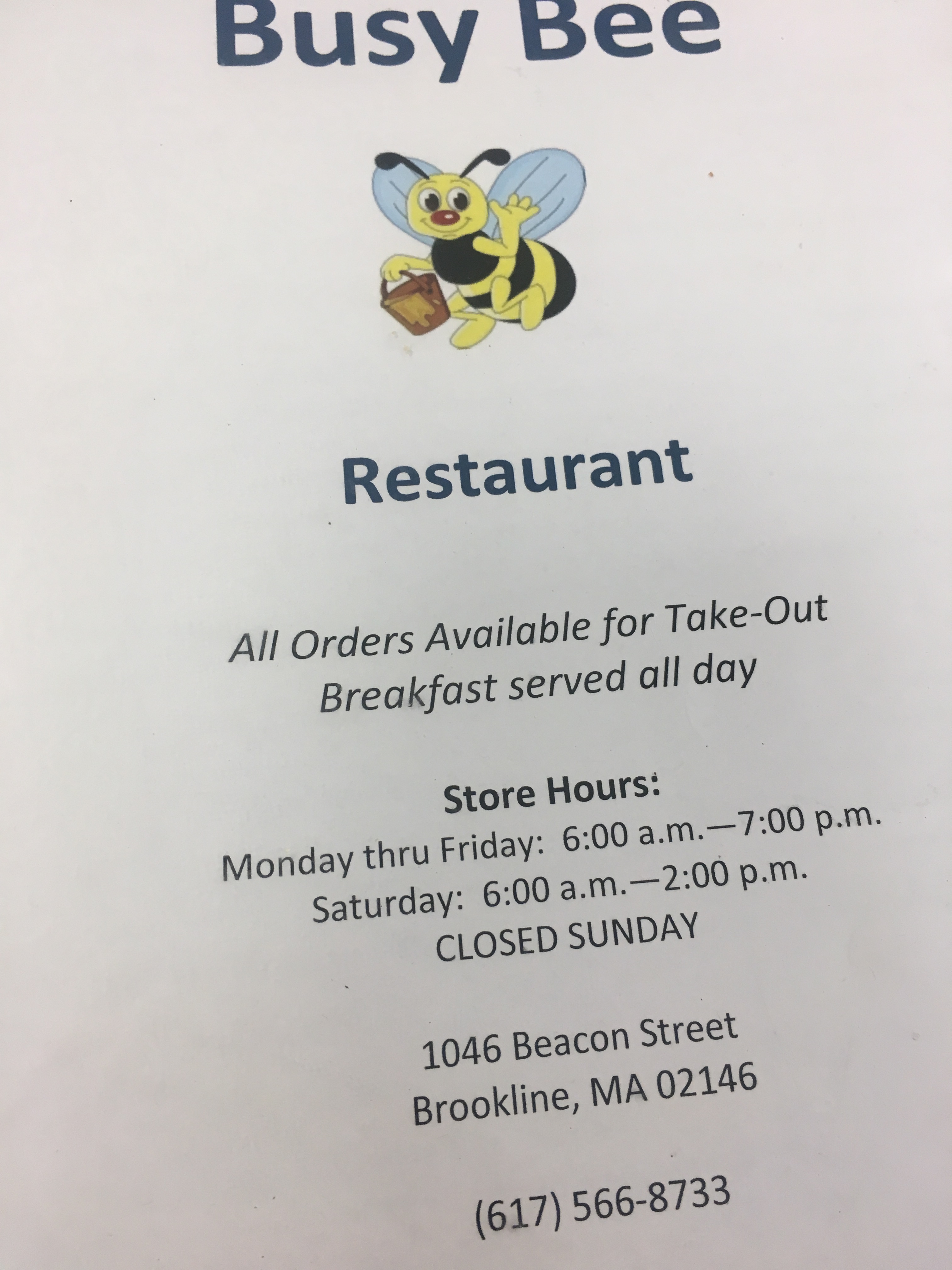 I give the food three solid stars. The pancakes were fine. I felt like I’ve had slightly better, but by no means awful. (I think they could’ve been baked longer). I would come to the Busy Bee again. The closer to closing time (7 PM) it got, a snappy elderly man was verbally making the rounds, as he sat on a stool at the same counter as me. I guessed that it was Christakis, but can’t confirm as I knew of his name after drafting this article. Boston Magazine mentioned that this Christakis was “brusque”, provoking complaints on Yelp. I had no issues with him and he was gracious when I aimed for the door, as all of the staff individually said goodbye to me.