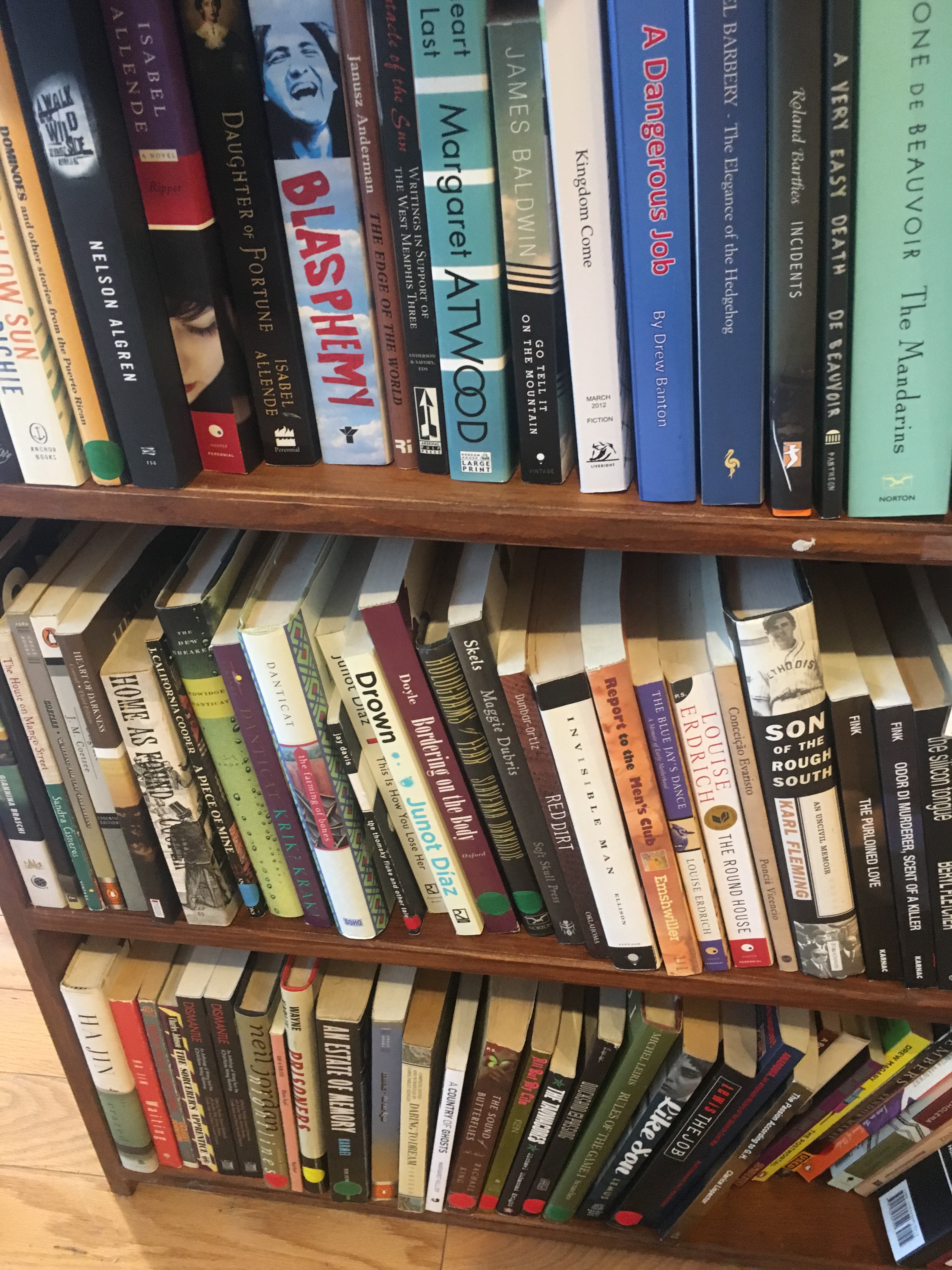 “I collect books to read, I’m an avid reader. I get a lot of used books and I was getting a lot of the same kind of perspectives. So this is me trying to round out my collection. I’m particularly interested in queer stuff, lesbian, trans, and perspectives that are different from my own…so African-American, Latina…especially things I don’t know a lot about like economics and politics” said Kyle, a native of “rural, Very White, lower-middle class” upstate New York. Her attire otherwise suggested she hailed from that more famous, diverse New York state of mind, downtown Manhattan, as she was wearing a red riding hood (no cape) dress and a cross body bag with an illustrated skull on it. Her long black hair was equally distinctive in pigtails and bright remnants of turquoise on top.
