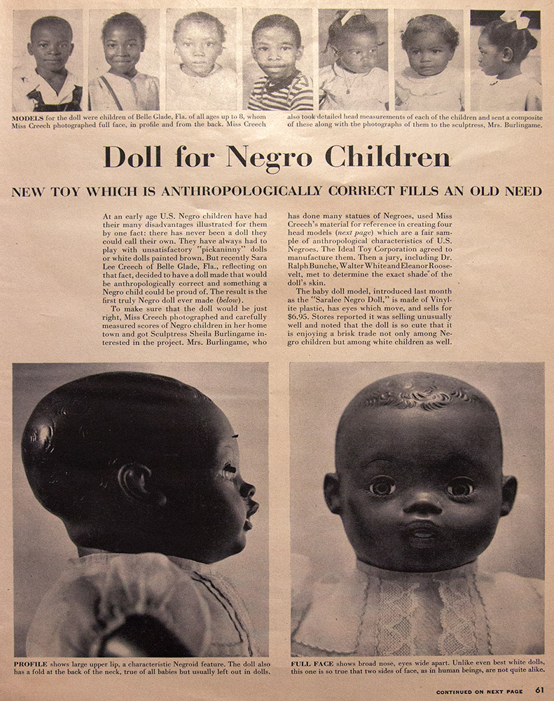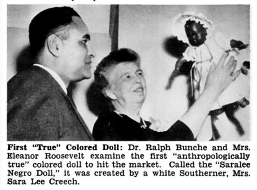 “She was this White sculptor that went to [Their Eyes Were Watching God author] Zora Neale Hurston and Zora introduced her to Eleanor Roosevelt,” said Britt. “So Zora and Eleanor looked at the doll, said it was great, then they took it to Ralph Bunche [the first Black person awarded a Nobel Peace Prize, in 1950], a few other people, the NAACP, the Urban League, and asked for their approval because they wanted to make sure they looked like Black kids. They approved it and Eleanor became the spokesperson for this doll to get it into different toy stores.”