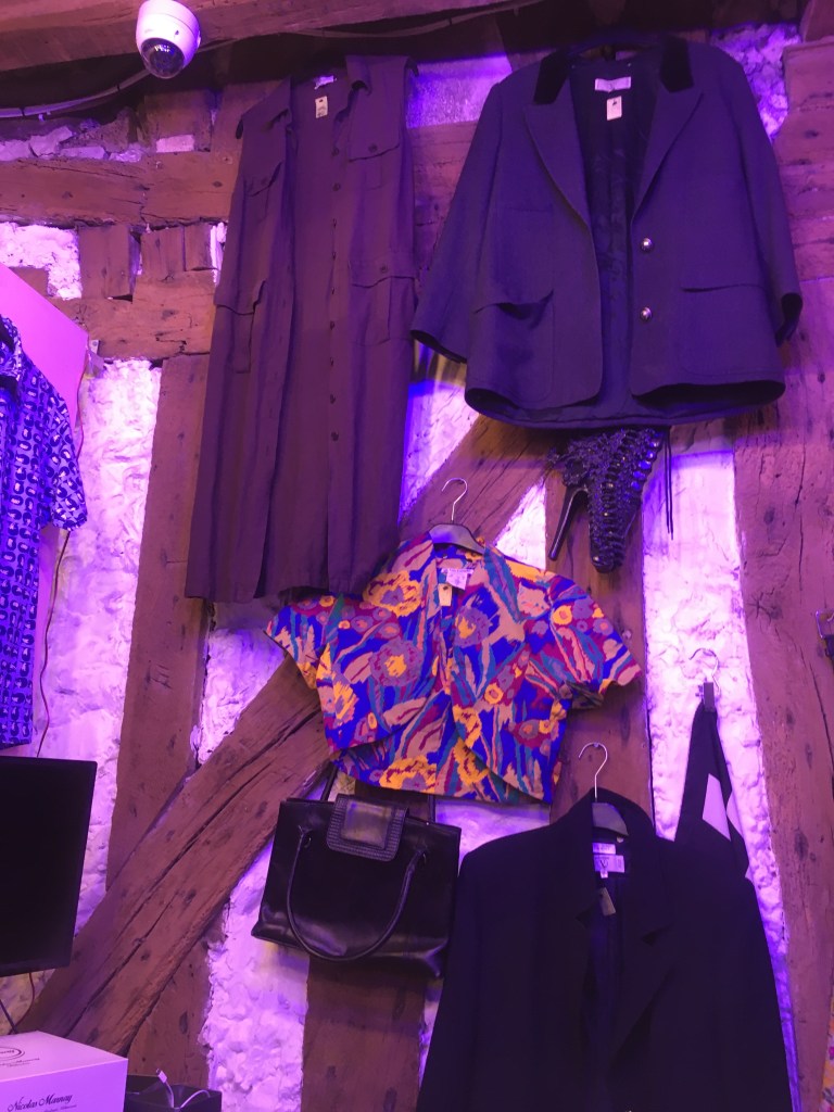 After I got my change, I looked again at one more rack because I feel like that’s just what you do in thrift/vintage stores. I did find a blazer that was okay and tried it on, but it was too obvious. I’ve slightly forgotten what it looks like a bit, but I think it had lace-up detailing on the sides and front. And while I normally like that touch, it wasn’t working for me. I placed it back and exited and that was when I took that picture of the storefront!