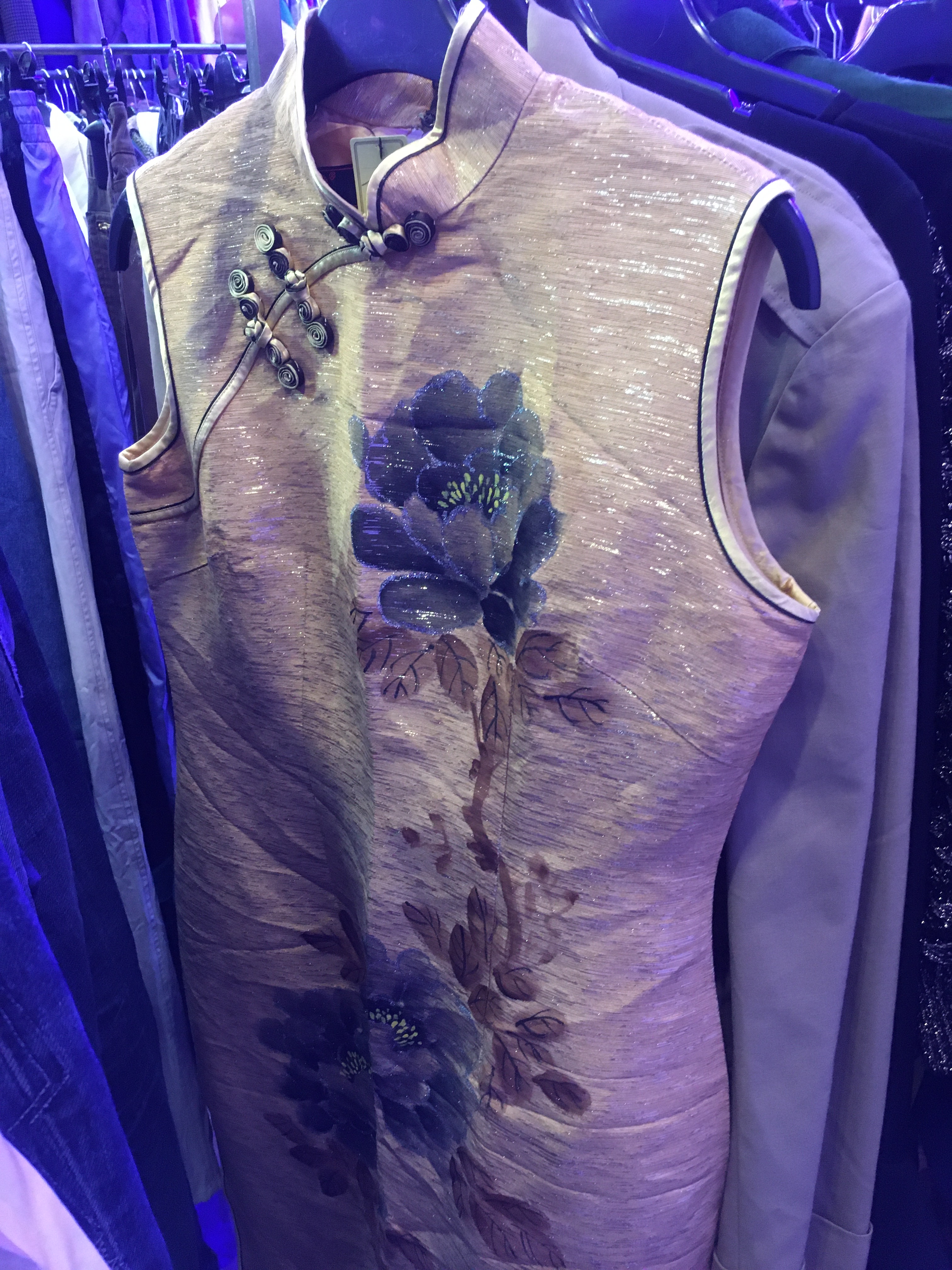 Space was limited, so I made sure my things were in plain view, and I tried on the dress after taking off my DVF blazer. Another good fit and comfy. And Pierre Cardin! 30 Euros wasn’t bad either. So in total, I paid 40 Euros and got 10 Euros back since I paid with 50 Euros. I was pleased and really excited about Cardin. Back in late 2019, I had visited Pierre Cardin: Future Fashion, a retrospective of his innovation in fashion and foray into interior design and licensing, at the Brooklyn Museum. It was great and my mom had a few of his pieces when I was a kid. In Boston, during a vintage fair, this one vendor had Cardin shorts, but they were a little too small for me!