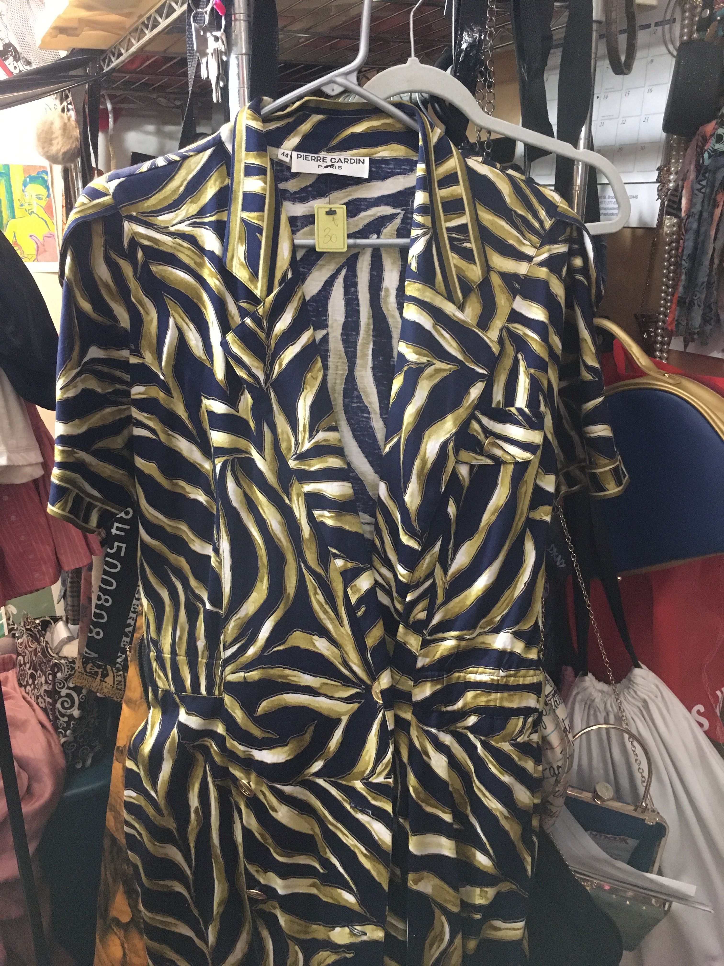 My thirst got realer and I kept looking and then I found a Pierre Cardin shirtdress! Yes! I picked it up so fast. By the register was a mirror, and it was there I saw that behind it were higher-priced items from iconic labels, like a Valentino blazer and that Guy Laroche floral bolero I wanted.