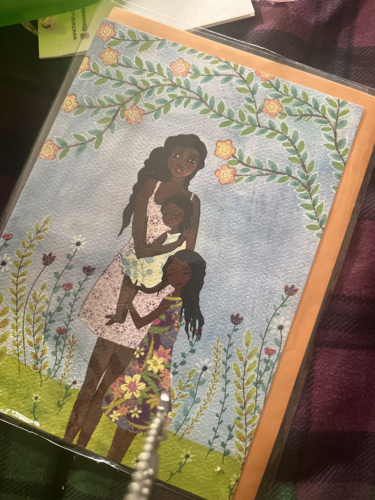 Here’s what realistically happened: I was up by 9, but still could barely exert the effort to put an overnight bag together. I checked the buses. The latest I could take one and still get some nightlife in would be 12 noon. Somehow at 9:30, I gathered my things into a JansSport backpack. I didn’t need to bring a lot this time, and I made sure to leave my mother a Mother’s Day card in the kitchen. I had bought it days earlier at Brookline Booksmith. A beautifully illustrated card that featured a black woman and two young black girls with her. I thought it was lovely and heartwarming. Representative of mama, my older sister and I.