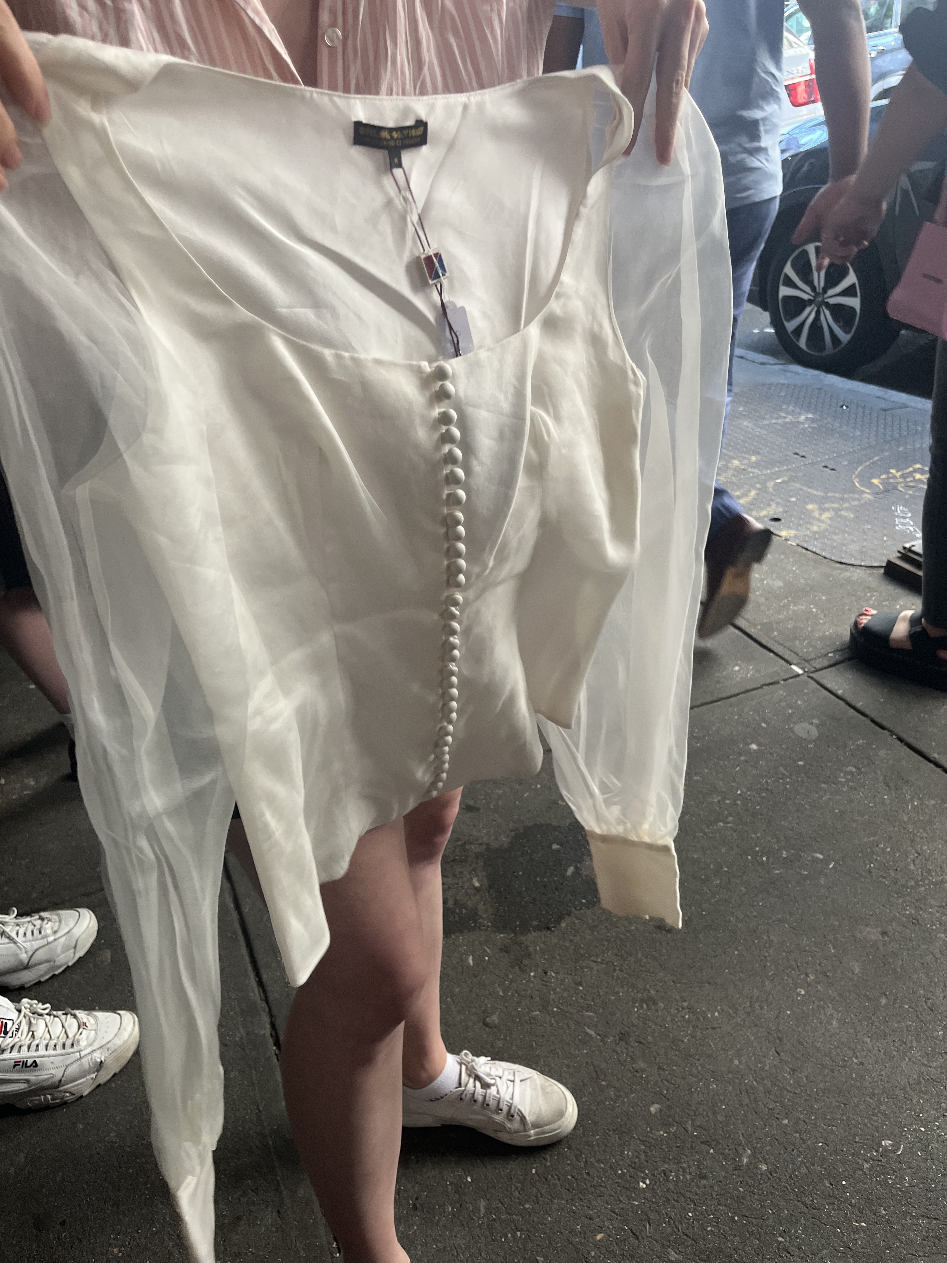 Post 12 noon, it really started to get hot and me and a girl behind me turned our backs to the sun. Someone across the street and in one of those apartment loft buildings hollered at us to ask what the line was for, which became a regular occurrence. This one I didn’t answer, but others I answered a few times and kept it short to being a sample sale as I couldn’t assume everyone knew who Sevigny was.