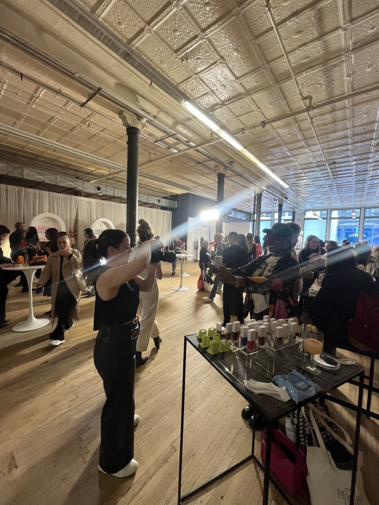 In 2023, this time right in the middle of Soho, the Beauty Lab really upped the ante. After you entered and got checked in, and were. given a bag with goodies in them (including a coveted Rhode peptide lip treatment, to my shock), the first two stops were Dove and Ulta Beauty. At Ulta, they were handing out goodies in semi-clear orange pouches that contained Ariana Grande’s newest Cloud Pink eau de parfum. I was so excited about that!!