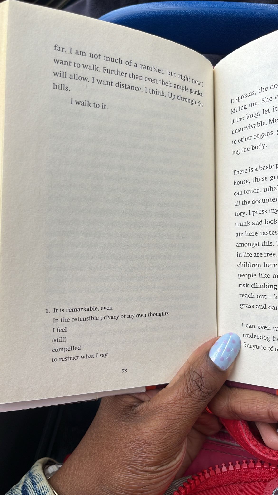 A page from Natasha Brown’s fantastic novella Assembly. This quote certainly touched me because I’ve done this even in the quiet presence of me, myself and I.