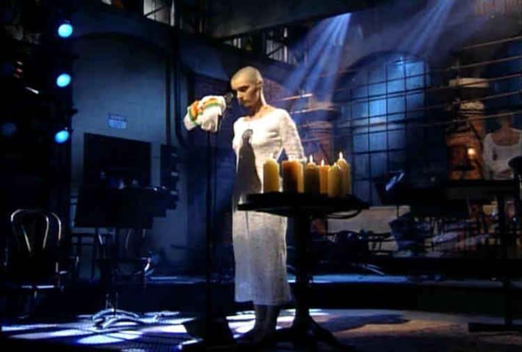 This is a shot of when the late Sinead O’Connor performed on Saturday Night Live on October 3, 1992. I read (listened via audiobook) her memoir Rememberings and, in addition to sharing her experience on set that day and the aftermath of her ripping a photo of the Pope (justified). O’Connor also shared that the white dress she wore that night once belonged to fellow singer Sade and that she had bought it at an auction in 1985. When I tell you I gasped a bit because I could not have predicted that fun fact coming as she spoke!